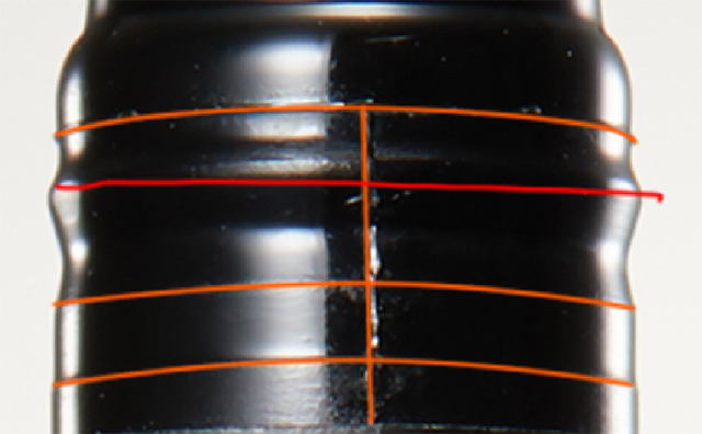为了方便看清楚将钢笔勾图的线条换成绿色五像素大小,蓝瓶眼霜的盖子和瓶身属于不同材质,依据物理分界将盖子和瓶身各分一部分,分成两大部分。第一部分盖子是两种不同肌理同一材质交错形成,有明显的转折,所以瓶盖内部还需要再进行一次分结构: