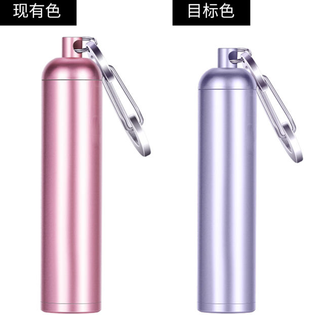 因为有指定色,实操可以选用另一种方法进行调色,首先吸取目标色,新建空白图层,将吸取的目标色填充在新建的空白图层,然后直接改变图层模式(常用的用于改变颜色的图层模式有“色相”“颜色”两种,实际使用时看哪种模式更适合使用哪种即可),示例中将图层模式改为“颜色”,需要注意的是,将便携香皂纸的瓶身和挂钩分开进行颜色调整,挂钩是金属银色,但是在瓶身紫色的影响下也会有一些紫色,所以调整挂钩调整颜色图层的不透明度为30%,